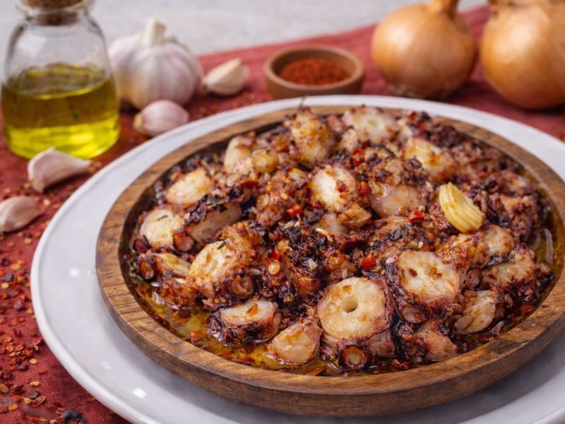 Acompanhei com batatas assadas e grelos salteados.