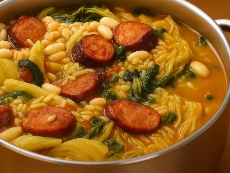 Comece por cortar o entrecosto em pedaços pequenos e tempere com quatro dentes de alho laminados, a massa de pimentão, a folha de louro, o vinho branco e o sal. Deixe marinar por 24 horas.