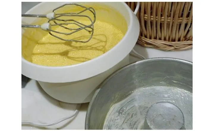 ➜➜➜ Dica: Bater muito bem os ovos com o açucar (está pronto quando o creme ficar esbranquiçado e a fazer bolhas). Isto vai fazer com que o bolo fique mais fofo.