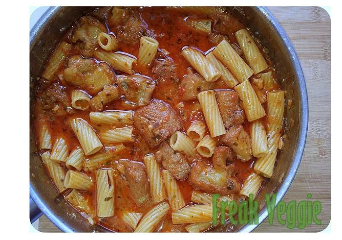 Juntar a massa e adicionar a água a ferver até a cobrir tudo. Quando voltar a ferver, rectificar os temperos se necessário e cozer por cerca de 14min. com o tacho tapado.