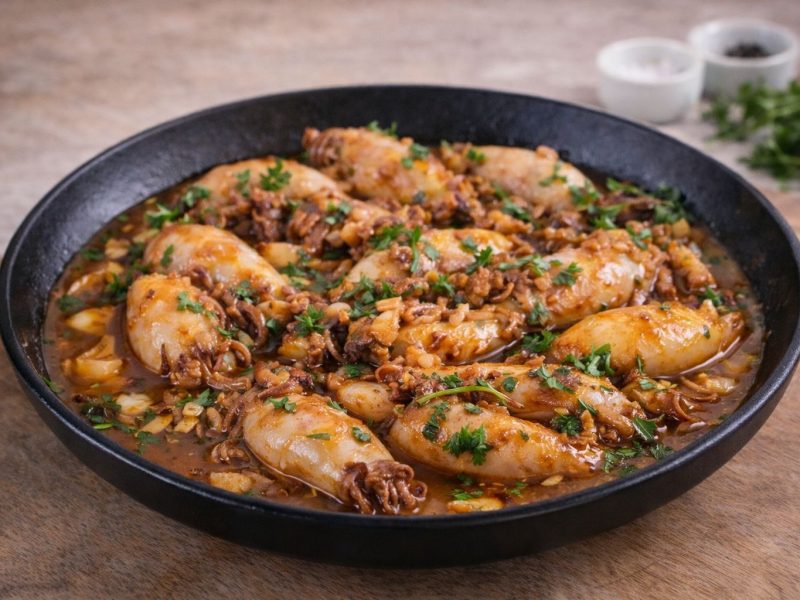 Quando, ao fim de cerca de vinte minutos, espetar um garfo e sentir a carne macia, retire o polvo e reserve a água